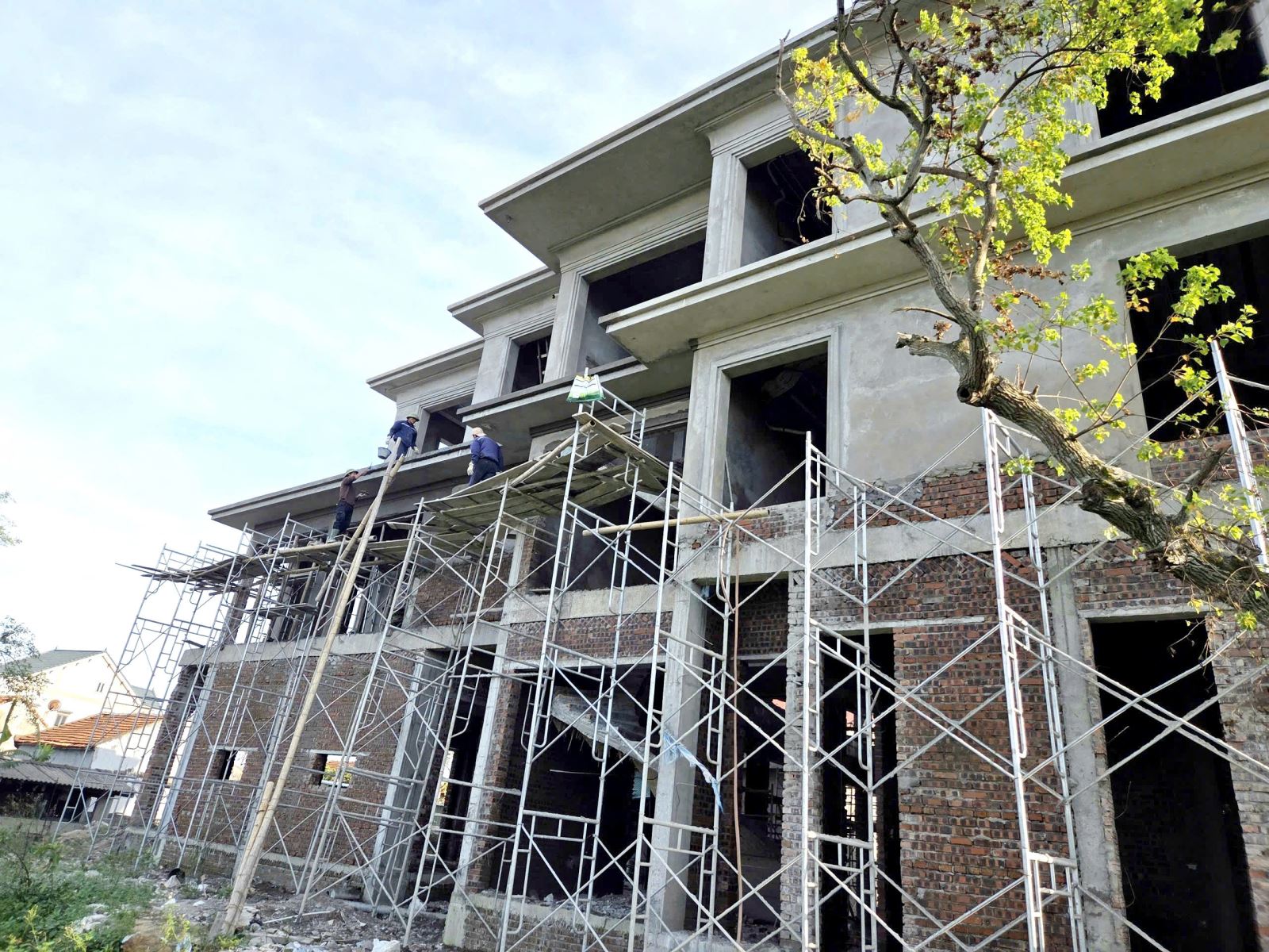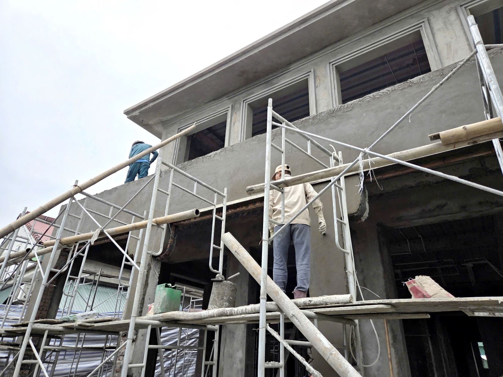 Dõi theo từng nhịp thi công, chúng tôi như đang chứng kiến một hành trình kiến tạo đầy mê hoặc. Những bức tường gạch thô ráp dần được phủ lên một “lớp áo mới” – phẳng mịn, tinh khôi.