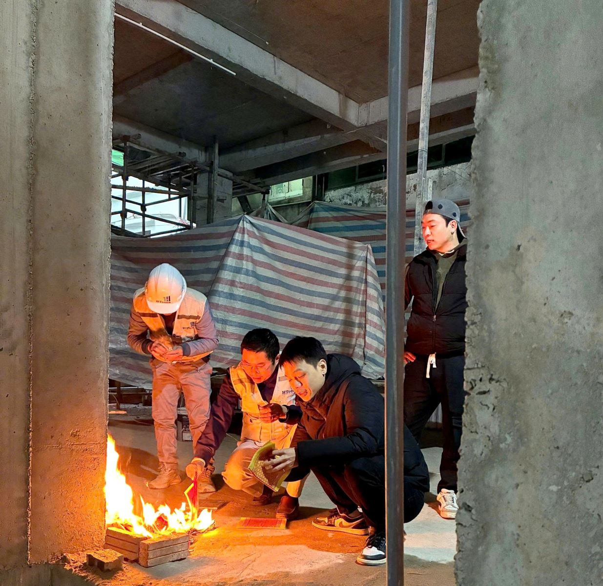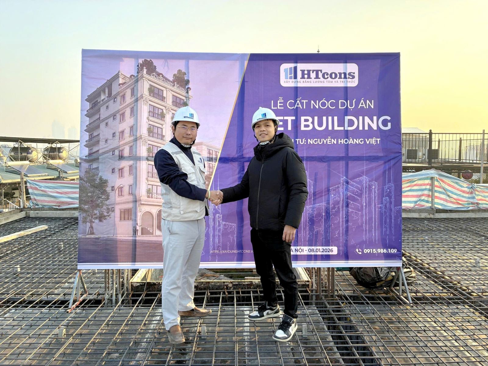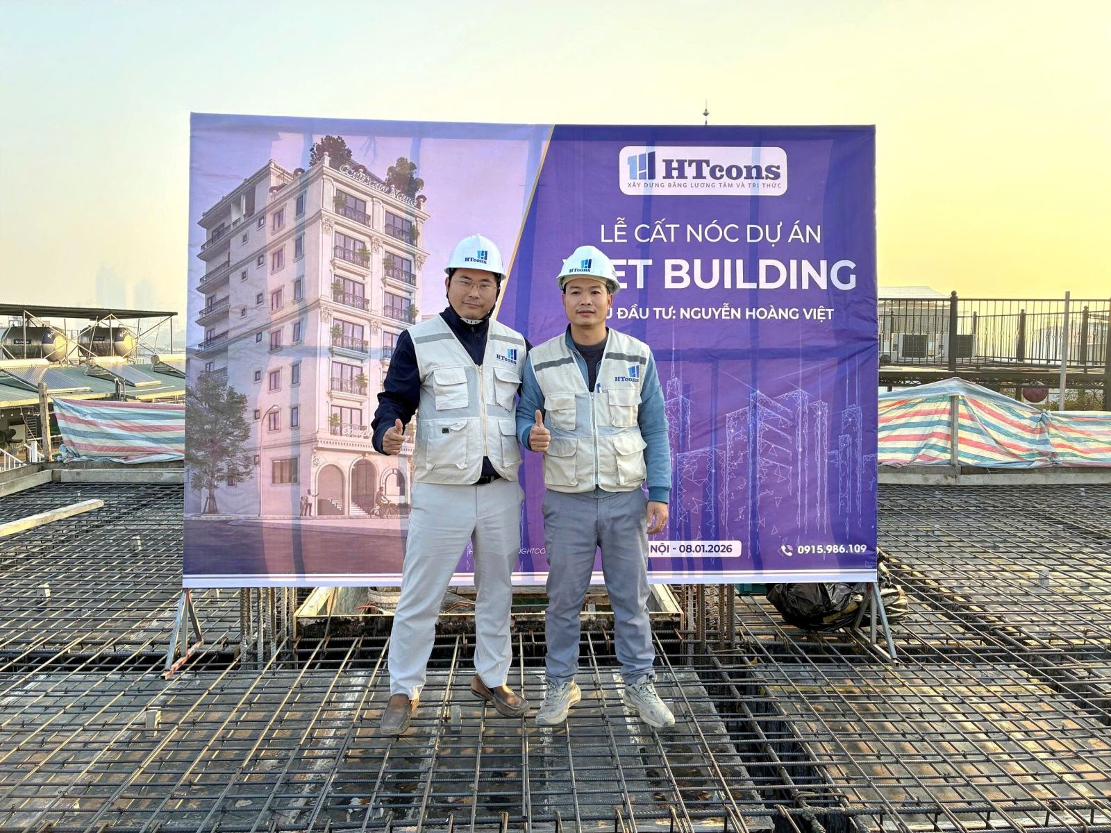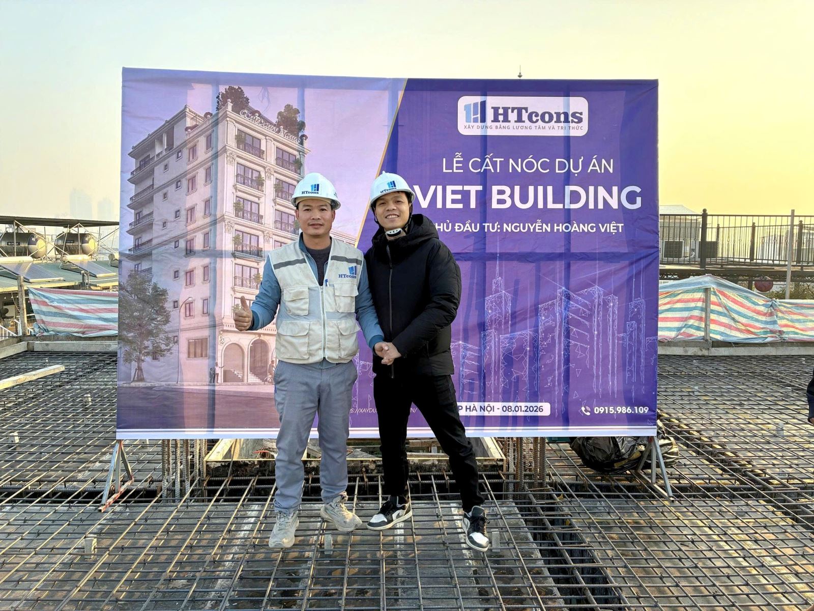 1 giờ sáng, công trình chính thức hoàn thành đổ sàn tầng 3. Những chiếc mũ phản chiếu ánh đèn, những giọt mồ hôi hòa trong hơi lạnh… tất cả tạo nên bức tranh rất riêng của nghề xây dựng — nơi những “ánh sao đêm” HTcons vẫn tỏa sáng lặng lẽ, giữ nhịp cho hành trình vươn cao từng ngày.