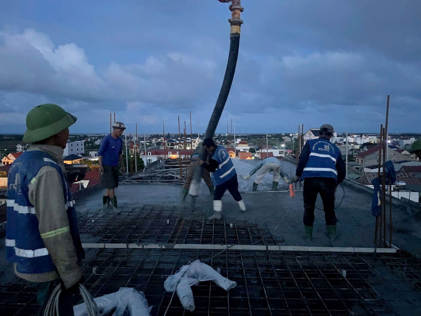 Tất cả đã tạo nên khoảnh khắc đặc biệt tại công trình Diễn Châu – khi những m3 bê tông cuối cùng được đổ xuống, cũng là lúc cột mốc cất nóc chính thức được ghi dấu trong ánh bình minh đầu ngày.