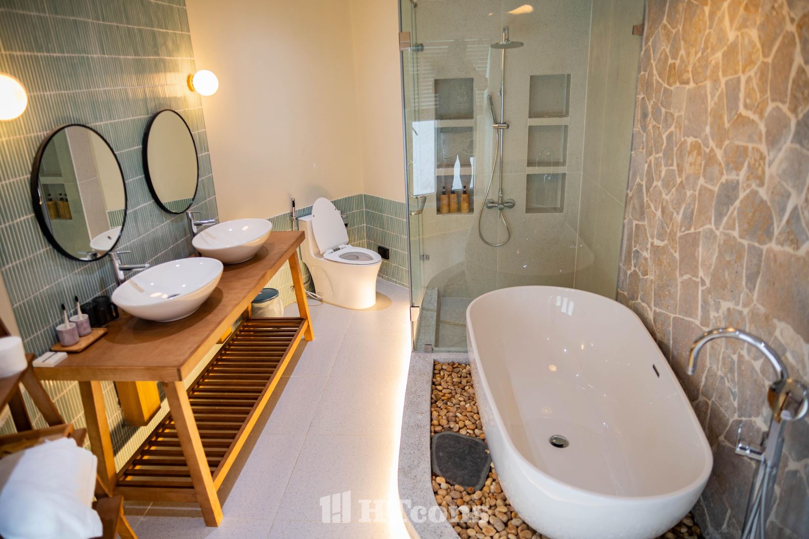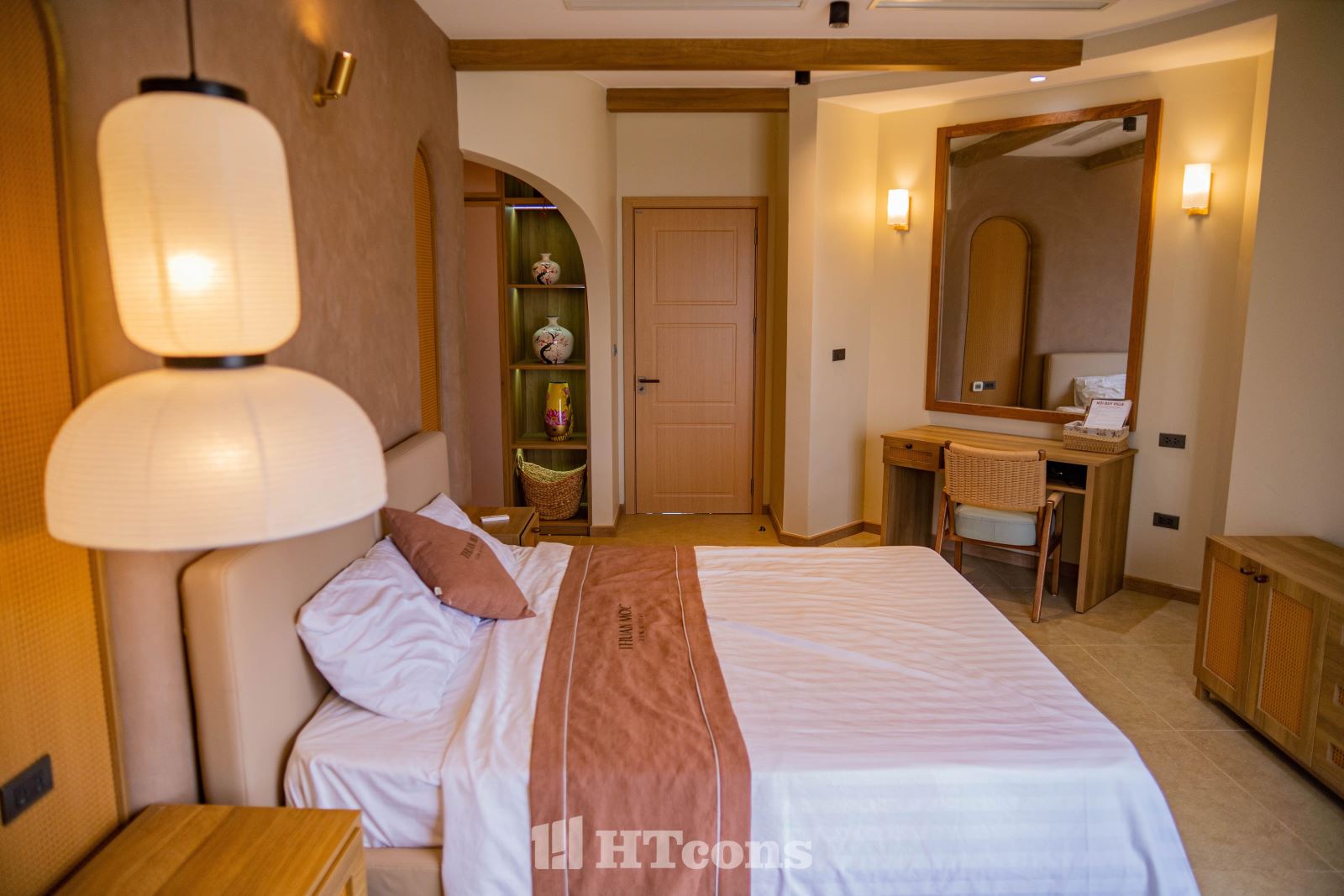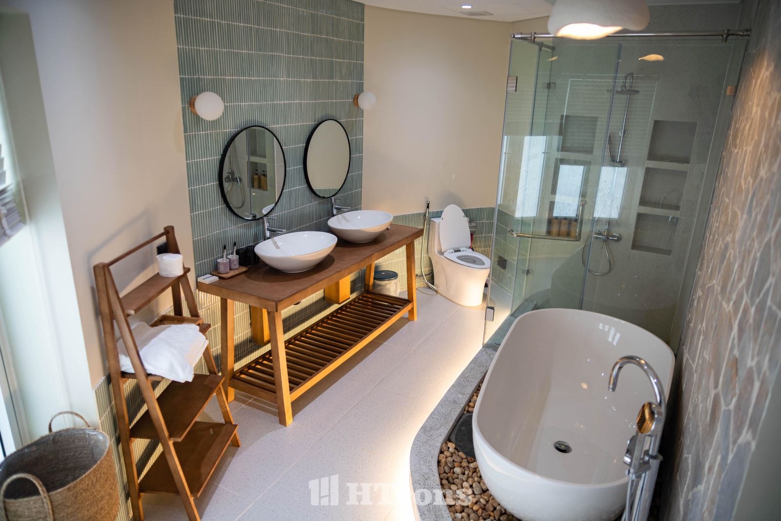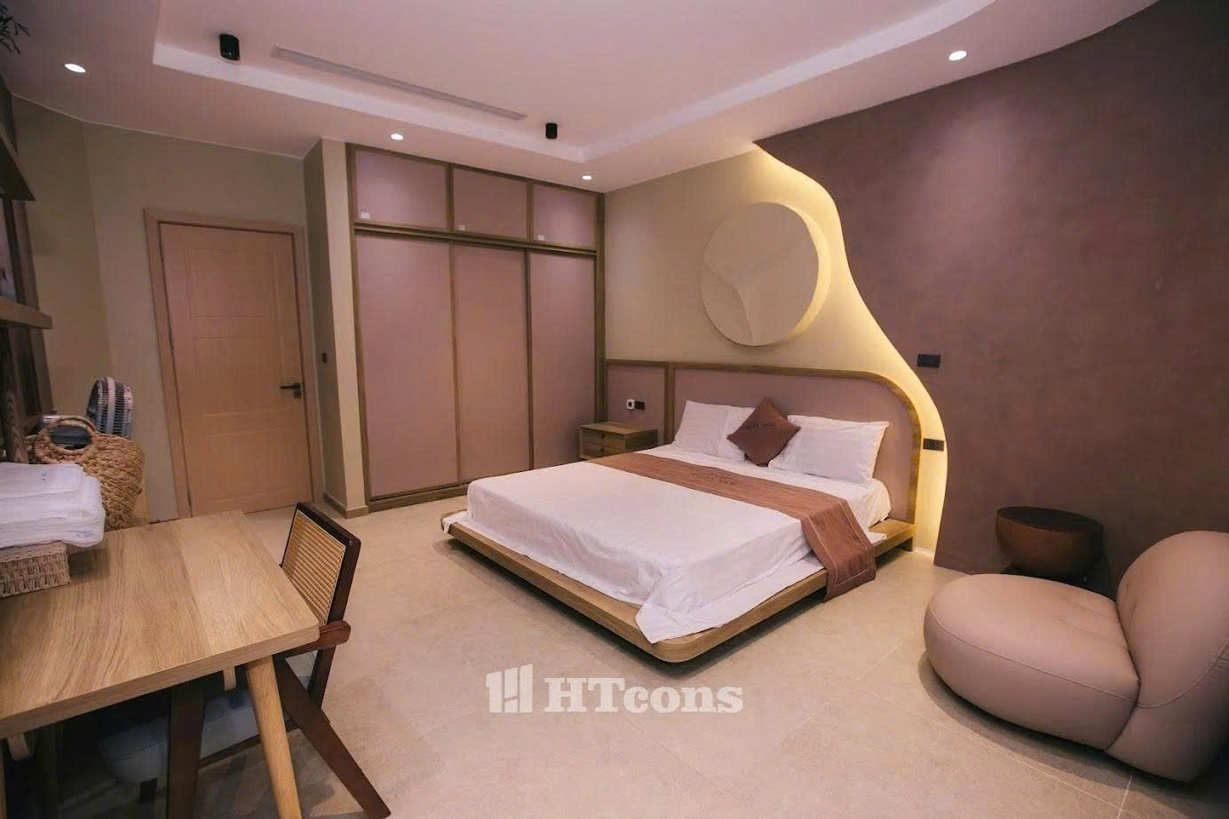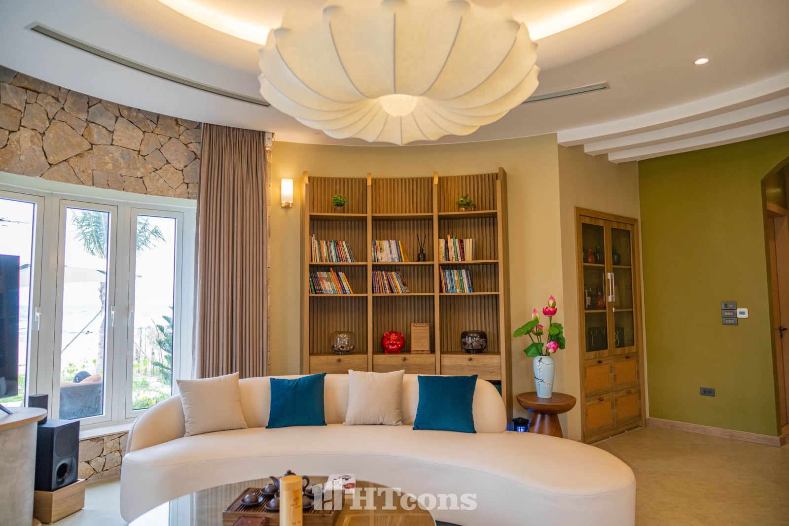 Đi vào bên trong là căn villa được thiết kế theo phong cách Japandi mộc mạc, giản dị nhưng không kém phần hiện đại!