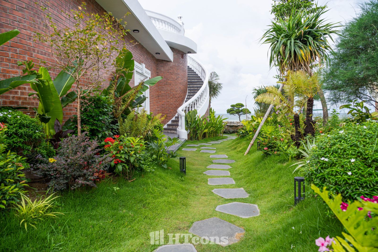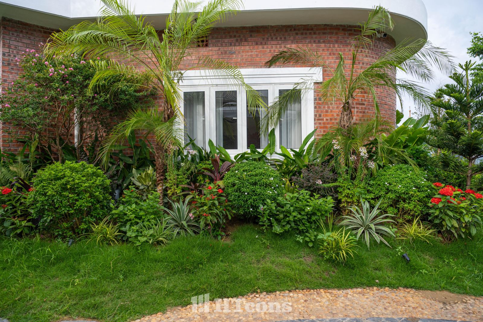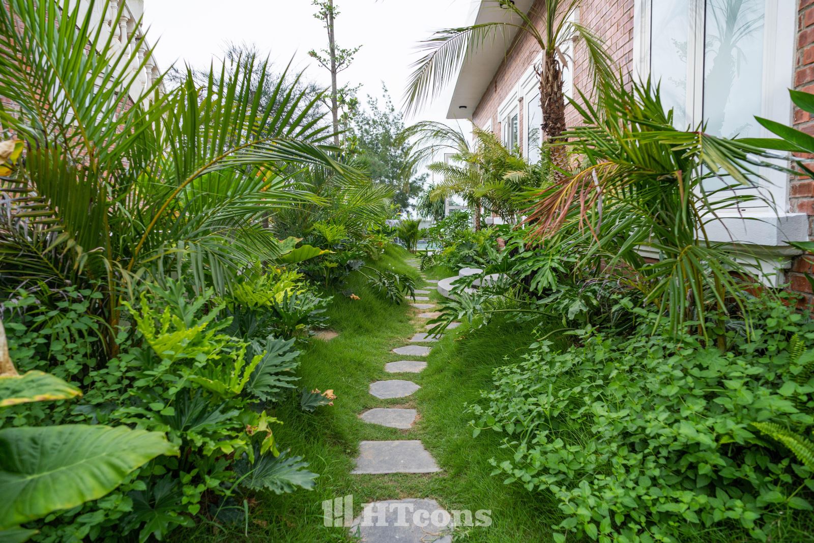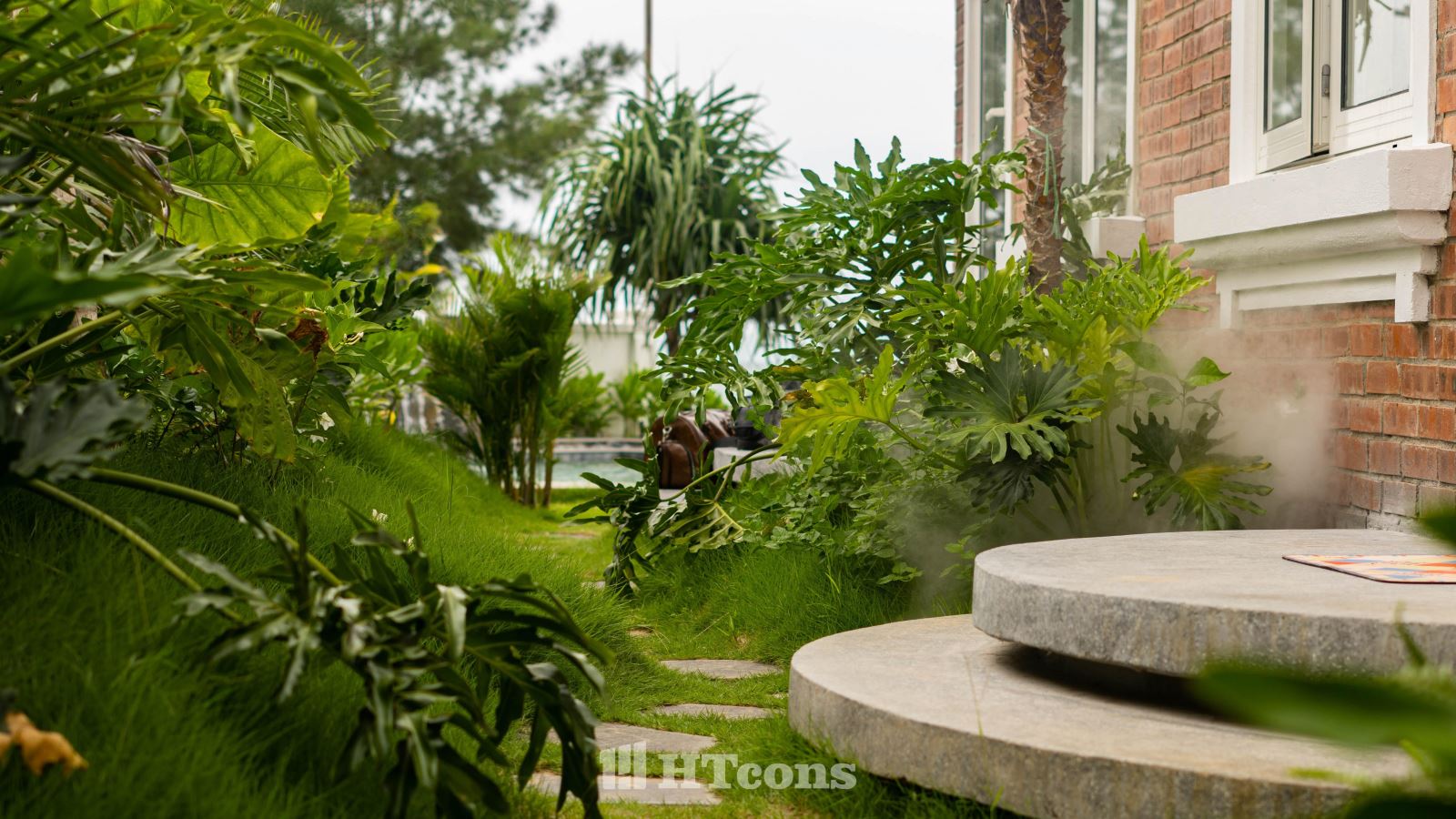 Tiếp theo, mời mọi người cùng chiêm ngưỡng khu vực sân vườn với phong cách nhiệt đới xanh mát!