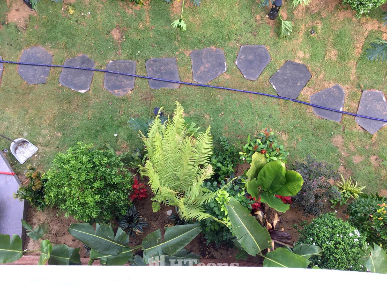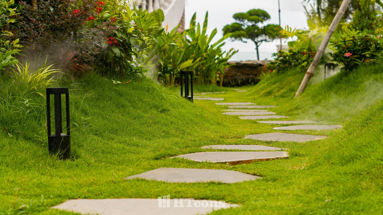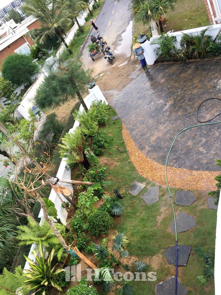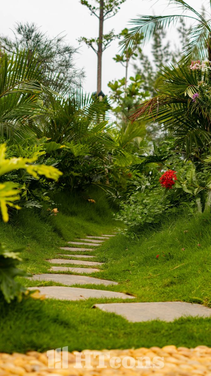 Tiếp theo, mời mọi người cùng chiêm ngưỡng khu vực sân vườn với phong cách nhiệt đới xanh mát!