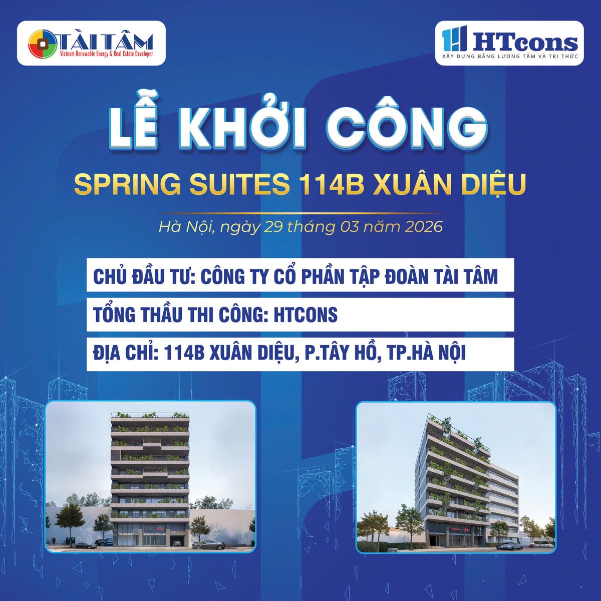 Tòa nhà SPRING SUITES tọa lạc mặt Hồ Tây lộng gió, việc thi công hai tầng hầm là một thử thách lớn và yêu cầu kỹ thuật rất phức tạp. Việc CĐT lựa chọn HTcons làm tổng thầu thi công dự án này khẳng định năng lực vượt trội của HTcons trên thị trường.