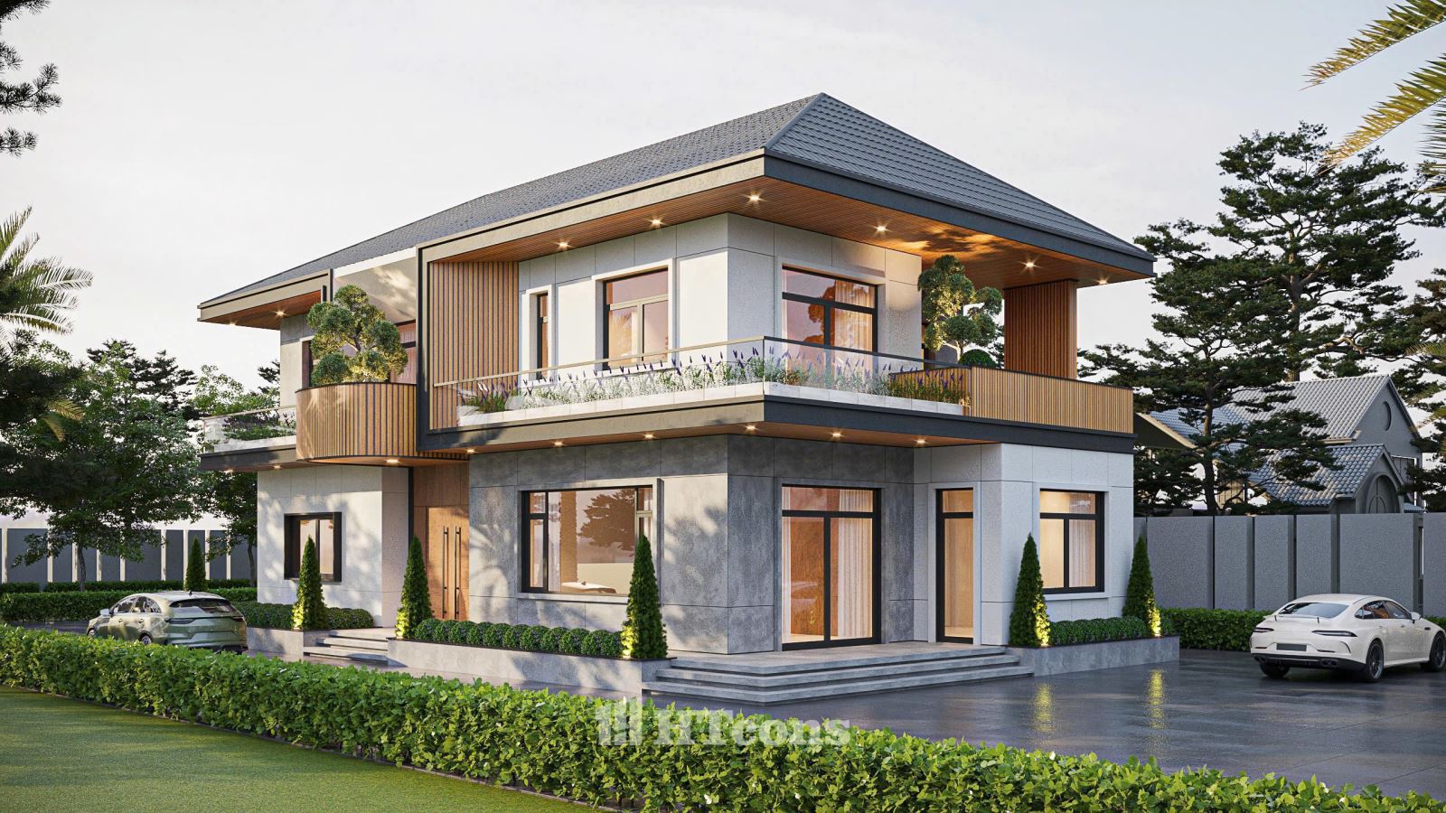 Mẫu biệt thư nhà vườn làsự giao thoa hoàn hảo giữa kiến trúc hiện đại và truyền thống. Đó là hệ mái ngói dốc nhẹ - một biểu tượng thân thuộc của kiến trúc quê nhà, kết hợp các mảng tường ốp đá tự nhiên và hệ cửa kính lớn mở ra sân vườn xanh mát cùng những khoảng hiên rộng đầy nắng và gió. Nếu bạn đang tìm kiếm một nơi để tâm hồn được nghỉ ngơi sau những bộn bề cuộc sống thì đây chính là mẫu nhà lý tưởng cho bạn.