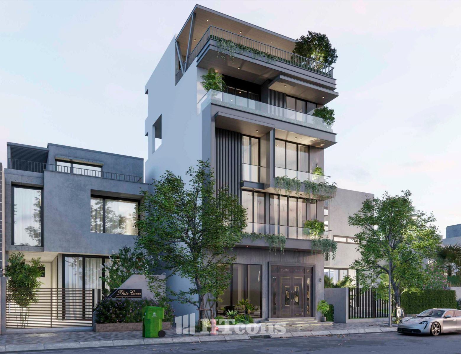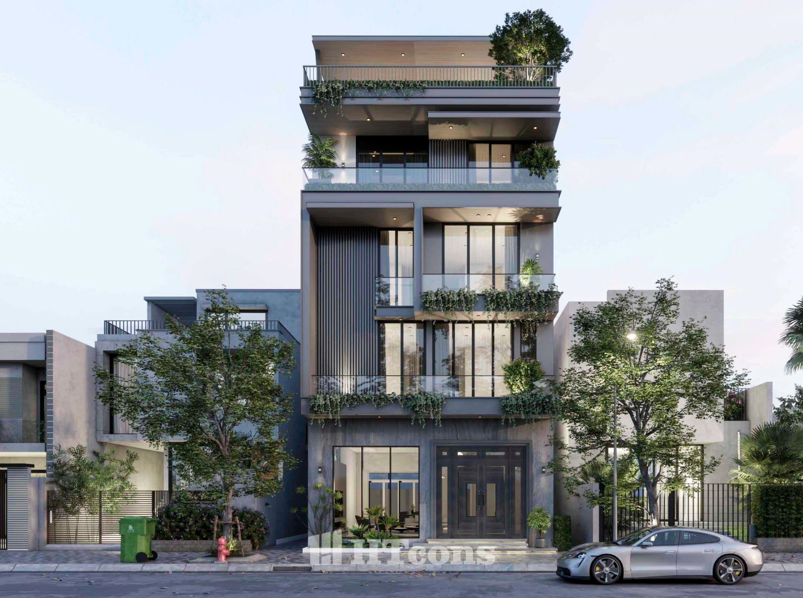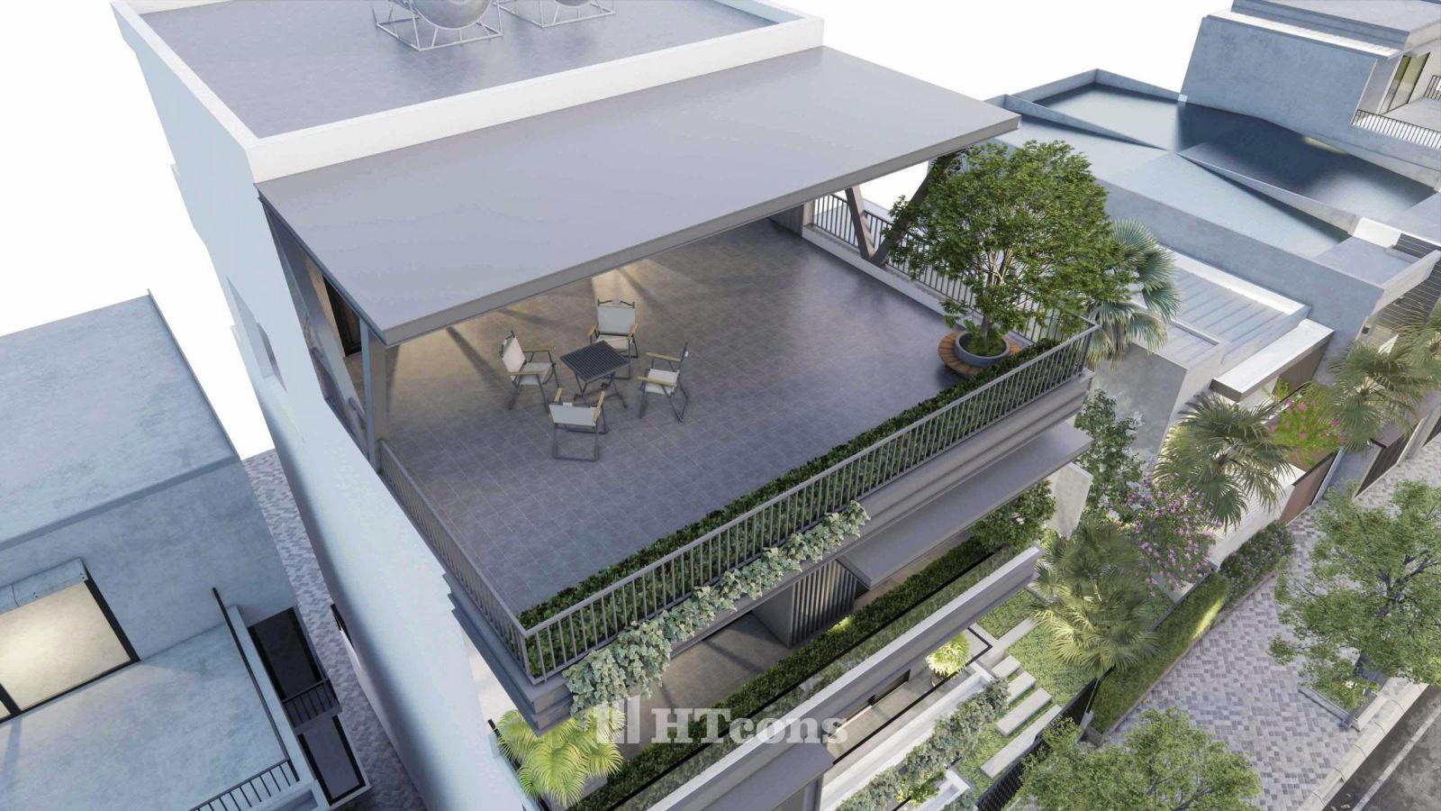 Ở mẫu nhà phố này kiến trúc sư của HTcons không cố gắng phô trương hay tạo sự khác biệt một cách gượng gạo, mà chinh phục bằng sự hài hòa trong từng chi tiết. Đó là những ban công rộng rãi ngập tràn cây xanh, là những đường nét kiến trúc được sắp đặt khéo léo, tất cả cùng hòa quyện để tạo nên một tổng thể cân bằng và thư thái.