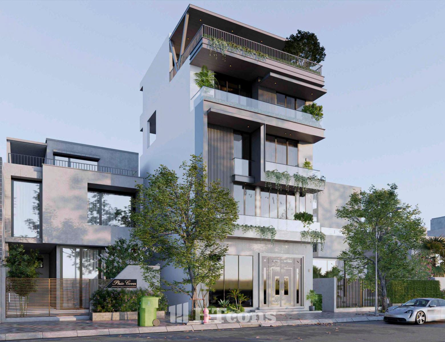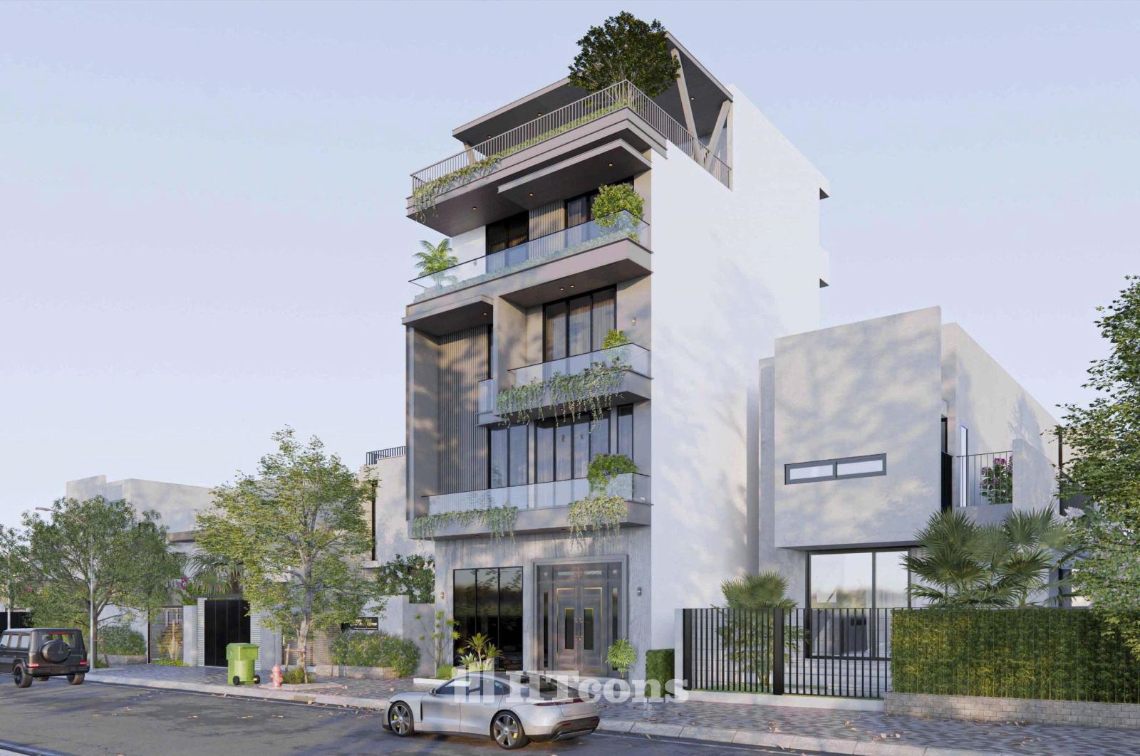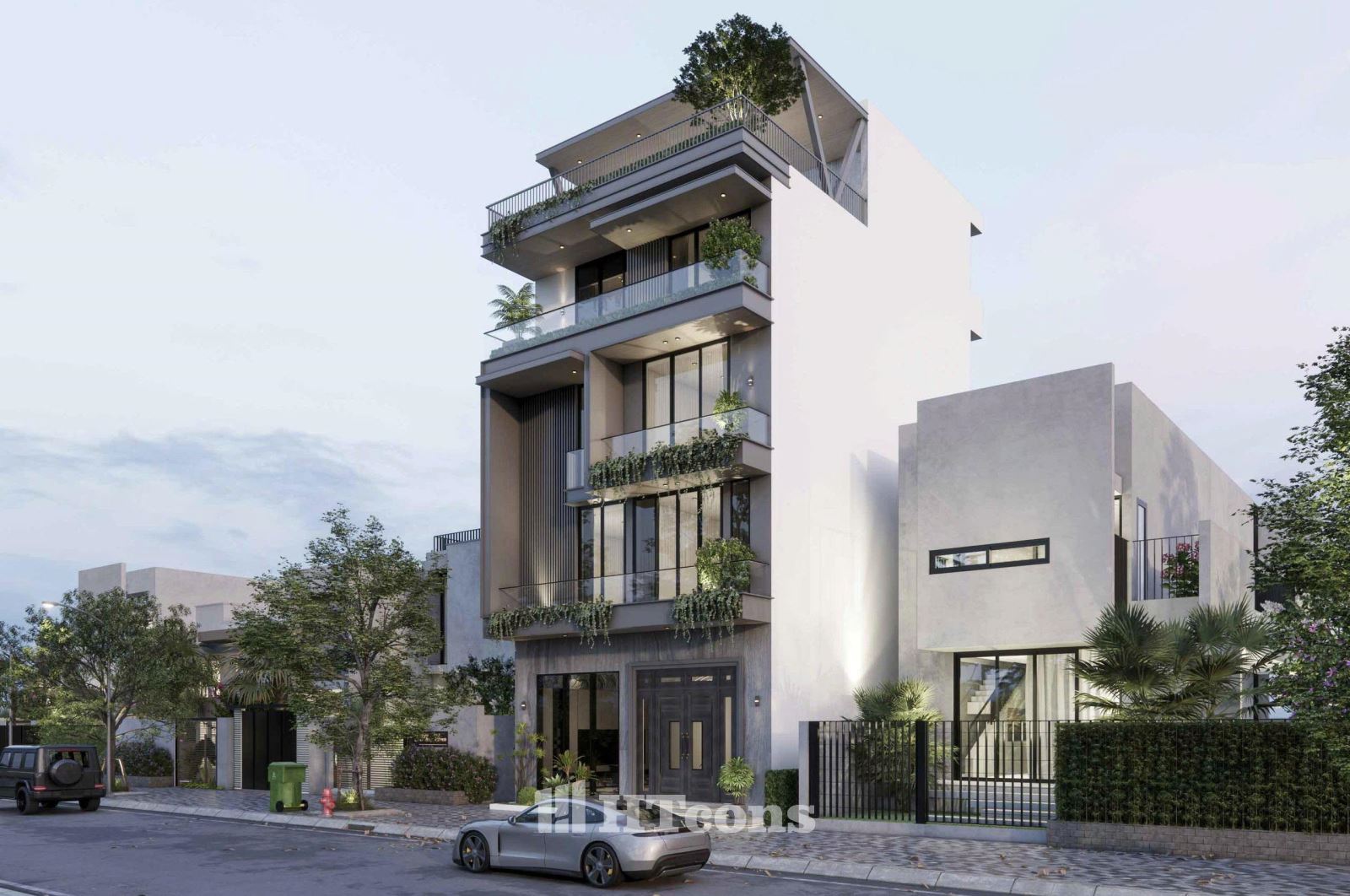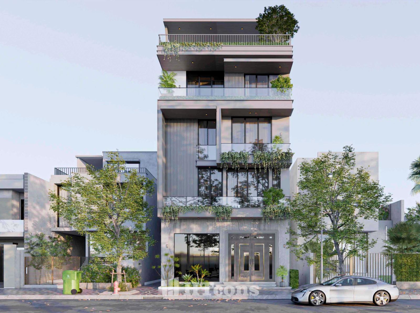 Ở mẫu nhà phố này kiến trúc sư của HTcons không cố gắng phô trương hay tạo sự khác biệt một cách gượng gạo, mà chinh phục bằng sự hài hòa trong từng chi tiết. Đó là những ban công rộng rãi ngập tràn cây xanh, là những đường nét kiến trúc được sắp đặt khéo léo, tất cả cùng hòa quyện để tạo nên một tổng thể cân bằng và thư thái.